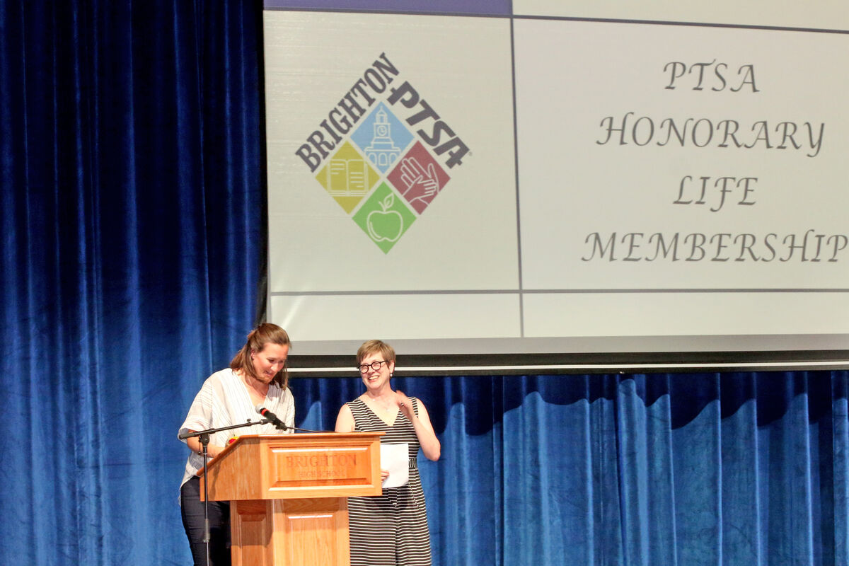 Three members of the Brighton school community were honored at the PTSA Life Membership Ceremony on June 25. Individuals receiving this recognition were honored for their outstanding service and commitment to the welfare of our children. Honorary Life Membership in the New York PTA is one of the highest honors that one can receive from the organization.